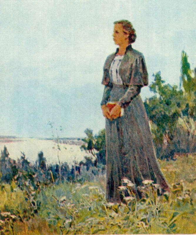 B. Babentsov. Lesja Ukrainka at Volodymyr's Hill. Oil. 1955 After edition: Lesja Ukrainka. – Kyiv: Soviet school, 1979, p. 114. |