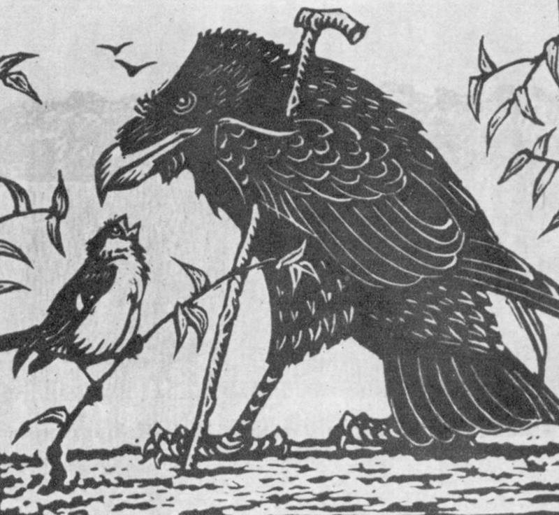 V. Litvinenko. Trouble teach. Linocut. 1962 After edition: Lesja Ukrainka. – Kyiv: Soviet school ed., 1979, p. 47. |