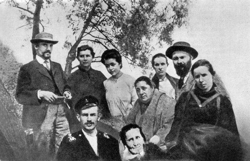 The third row (standing): K. V. Kvitka, Olena Pchilka, Isidore Kosach, Olga Kosach-Kryvynjuk, M. V. Kryvynjuk.