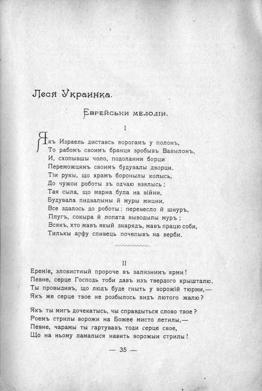 with Lesja Ukrainka's rhyme "Jewish melodies"