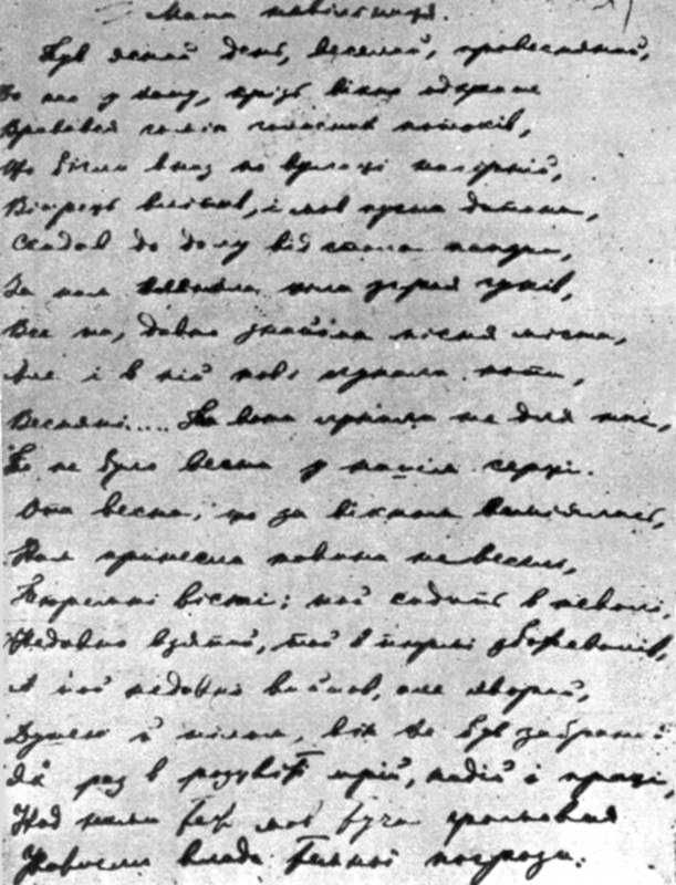 First page of autograph Lesja Ukrainka's rhyme "Mother-slave" After publication: Lesja Ukrainka. – K.: Soviet school, 1979, p. 86. |