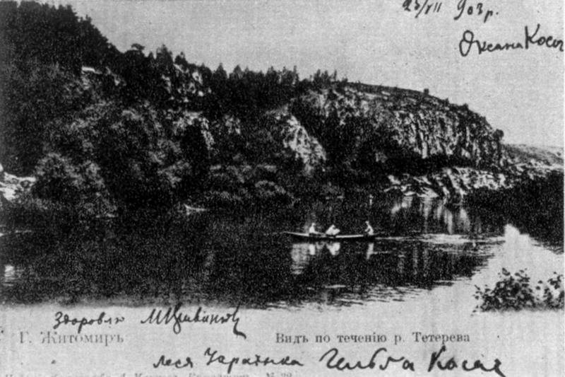 Postcard with overlooking of Teteriv River in Zhytomyr and signature of Lesja Ukrainka, 25 Jul (7 Aug) 1903 After publication: Lesja Ukrainka. – K.: Soviet school, 1979, p. 148. |