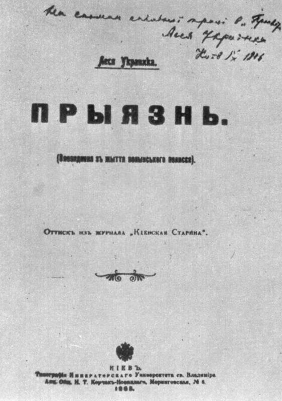 The title page of a single print Lesja Ukrainka's story "Sympathy" After publication: Lesja Ukrainka. – K.: Soviet school, 1979, p. 161. |