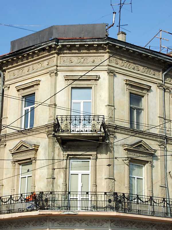 Hotel Central in Lviv (Svobody Avenue, 11), where stayed Lesja Ukrainka. Fragment of the facade Photo M. I. Zharkikh Apr 4, 2012. |